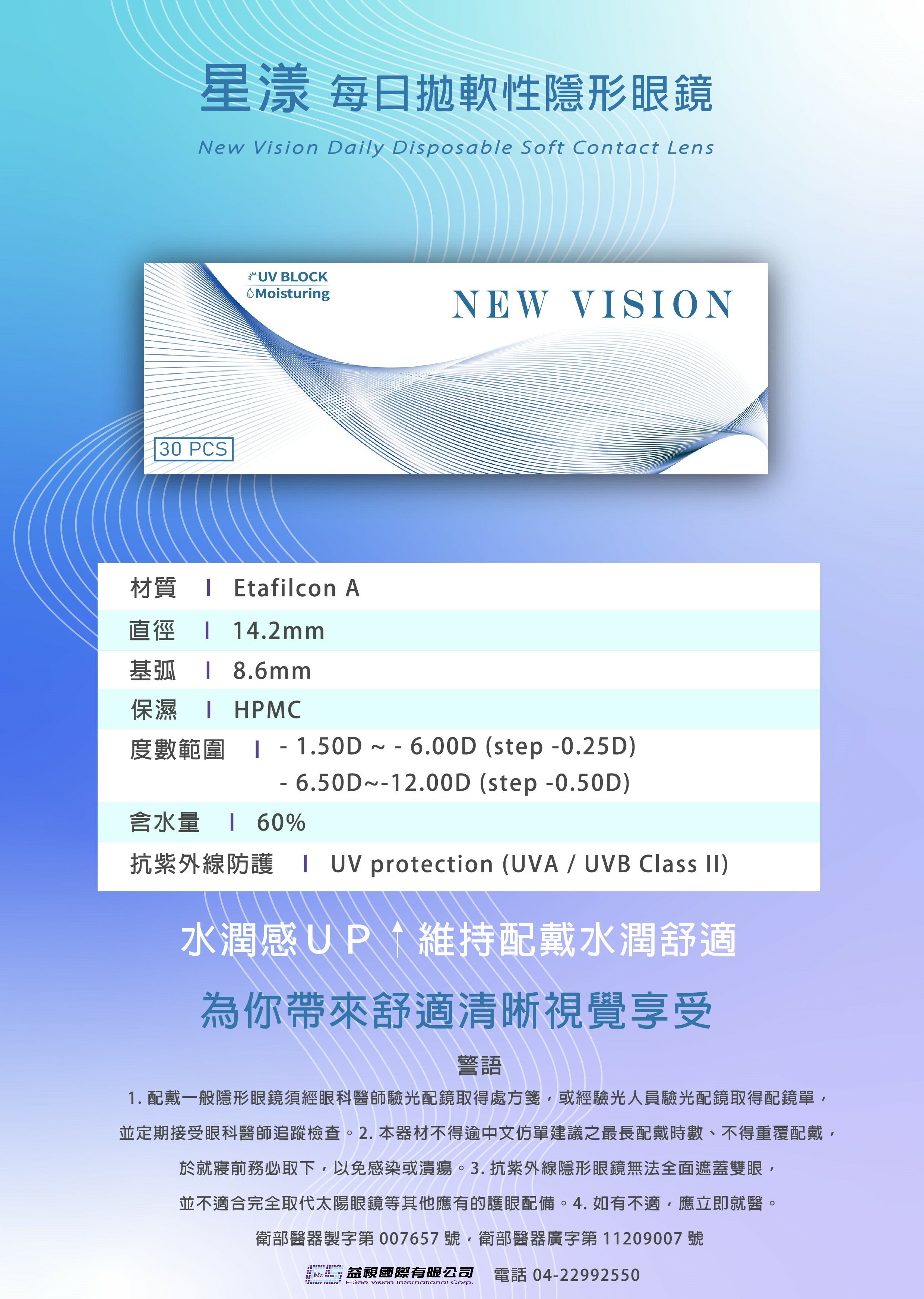 度數 | -1.50 ~ -6.00D(0.25Dsteps)